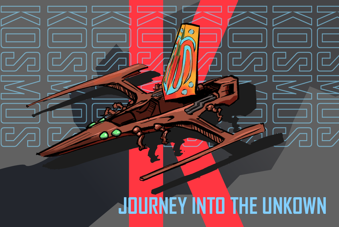A collection of promotional art and merchandise for a theoretical space adventure game called KOSMOS.